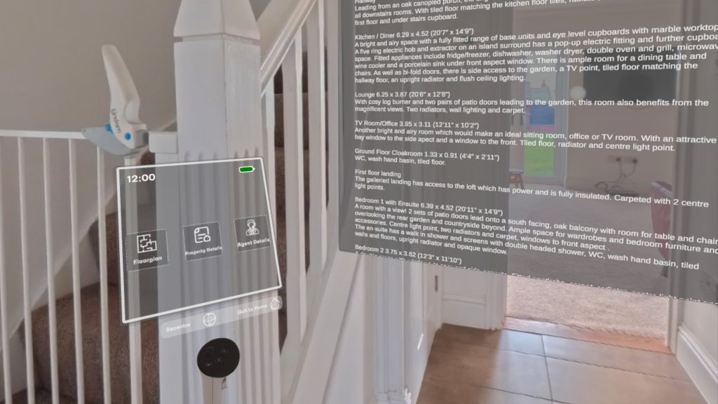 Our platform is incredibly easy to use – once you’re in the property, use the hotspots to “teleport” from room to room. Hover over them to see where they will take you, or open your Wrist Menu to view the entire floorplan. Inside this menu is also the details of the agent selling the property, as well as the property description.