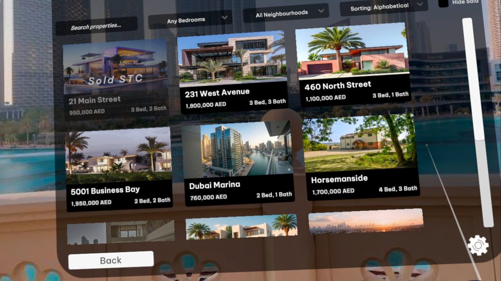 Visit the Meta Quest store, or click the link in the footer for a direct link, and download the app for free. Inside, you’ll be able to view properties by agency, area or simply view all the properties available.